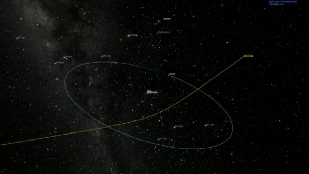 Los astrónomos de Arizona avistaron a esta diminuta roca espacial el pasado mes de octubre cuando sobrevoló a 128.000 kilómetros de la Tierra o un tercio de la distancia entre nuestro planeta y la Luna, lo que técnicamente se consideraría una rozadura.