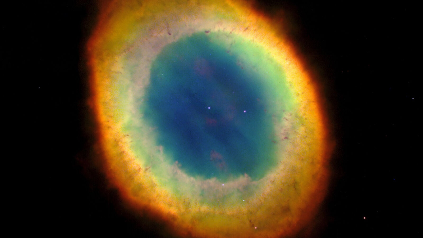 Uno de los objetos más vistosos que nos ha mostrado el telescopio espacial Hubble es la nebulosa del Anillo, también en la constelación de Lyra, pero un poco más alejada que Vega. Estos restos de una estrella similar al Sol se encuentran a 2.283 años luz. Si nuestro astronauta estuviese allí y mirase hacia nuestro planeta, no nos vería a ninguno de nosotros... ya que todavía no habíamos nacido en el año 268 aC.