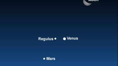 Cerca de los planetas también habrá una estrella brillante: se trata de Régulo, en la constelación de Leo, cuyo nombre procede del latín 'Regulus', que quiere decir 'pequeño rey'. Lo curioso de esta estrella es que se consideró una 'estrella real' mesopotámica: si alguien nacía cuando el Sol estaba posicionado sobre ella, el pequeño podía acabar siendo rey. Hoy en día esto sucede el 23 de agosto.