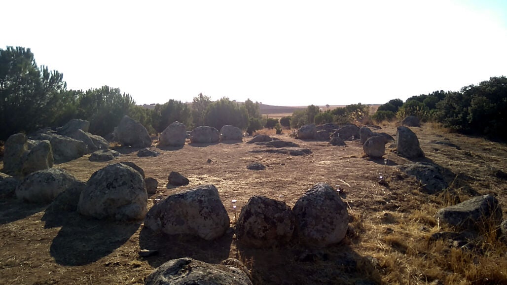 Al ver que se trataba de arqueólogos, a Ildefonso se le encendió la bombilla. Tras darles los datos que pedían sobre el verraco, el ya alcalde de la localidad los llevó ante aquellas piedras que visitaba de joven. “Pensamos desde el primer momento que podría ser un crómlech”, señala Isabel-Ludeña. ¿Qué es un crómlech? Se trata de una serie de piedras en disposición circular u oval. Para que se hagan una idea, Stonehenge es el crómlech más famoso.