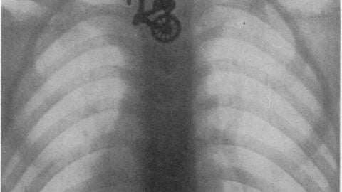 Entre lo más inaudito está una radiografía del esófago de un niño que se tragó una bicicleta de juguete en 1906 o el chaval de ocho años, diagnosticado con hiperactividad, que se tragó durante meses los perdigones de los gansos que cazaba y comía su familia como parte de un juego con su hermano.
