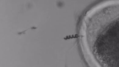 Un equipo de investigadores alemanes ha diseñado una hélice metálica diminuta que, colocada alrededor de la cola de un espermatozoide, le ayuda a alcanzar el óvulo. La mejora de su movilidad permitiría solucionar una de las principales causas de la infertilidad masculina.
