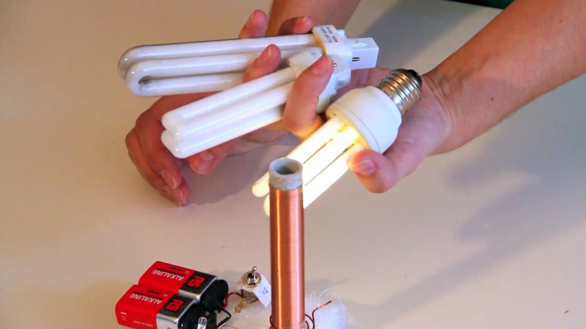 Para que una bombilla se encienda sin necesidad de enchufarla a la pared necesitamos enrrollar los cables formando bobinas.