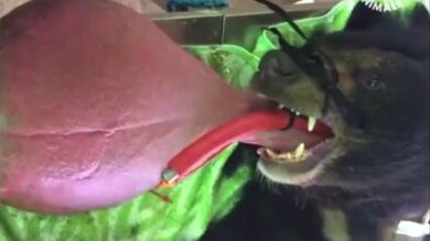 Logran operar a un oso que arrastraba una lengua de 3 kilos