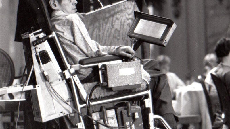 Aunque no parecía suponer una grave limitación a su trabajo, la esclerosis acabó por dejar su cuerpo paralizado cas totalmente. Su situación le llevó a comunicarse a través de un ordenador y a usar distintas sillas de ruedas durante su existencia, todas equipadas con la última tecnología de la época.