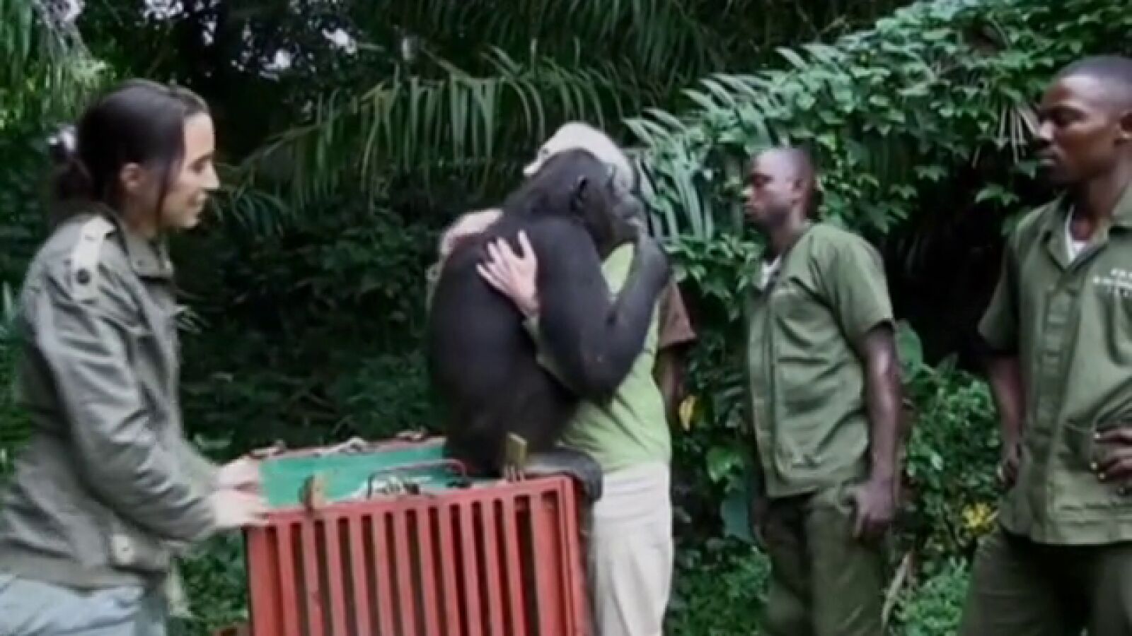 Qué mejor adiós que el emotivo vídeo de esta última liberando en la selva congoleña a un chimpancé que había cuidado tras su rescate. Y el enorme abrazo que le regala para decir adiós. Un vídeo... Muy mono.