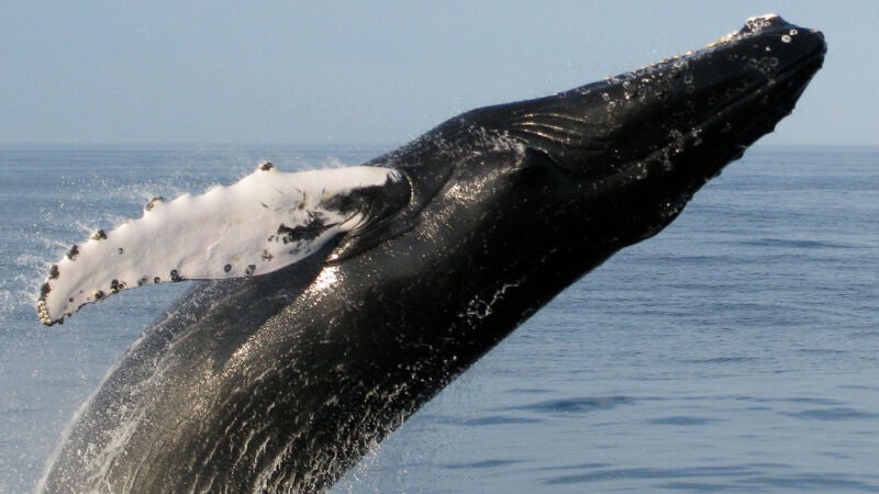Un dron graba a un grupo de ballenas jorobadas devorando un banco de peces
