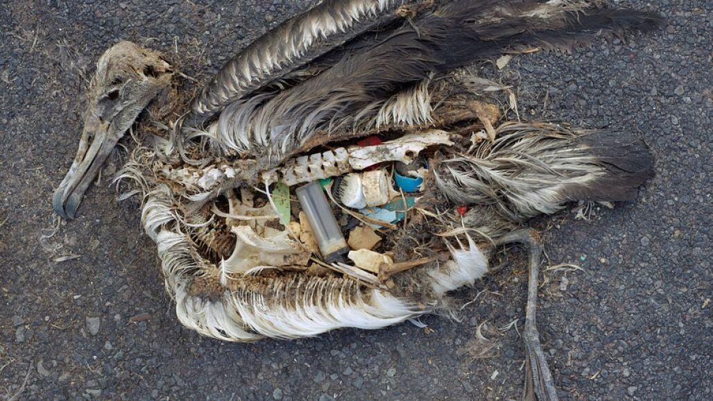 Hace unos años el artista Chris Jordan realizó una serie de fotografías espeluznantes, tomadas en el atolón de islas Midway en el Pacífico Norte, que mostraban cadáveres en descomposición de albatros que habían muerto por una “sobredosis” de pequeños objetos de plástico.