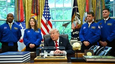 El presidente estadounidense, Donald Trump, recibió este miércoles en la Casa Blanca a los astronautas de Artemis II de la NASA, a los que felicitó por el éxito de la primera misión que alcanzó la órbita de la Luna en más de medio siglo y los humanos que han viajado más lejos de la Tierra.