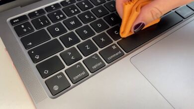El cepillo más fino de la aspiradora es otra opción y puede servirte perfectamente para esta tarea. Si además lo quieres hacer más profesional, utiliza un bote de aire comprimido especial para limpieza de ordenadores. Por último, humedece un paño en agua caliente y jabón y limpia las teclas y toda la superficie. Haz movimientos suaves y así no dañarás las teclas o estructura.