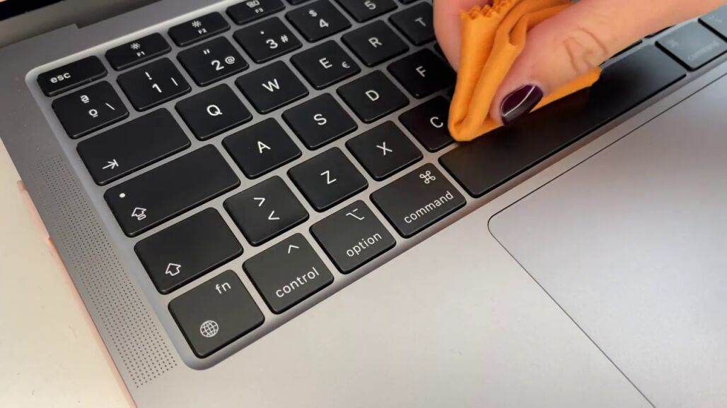 Por otro lado, también puedes recurrir a una disolución de agua tibia, alcohol y líquido desinfectante y ayudarte con un paño que no deje pelusa. Dóblalo de manera que facilites la limpieza entre las teclas y arrastra poco a poco la suciedad entre los botones.