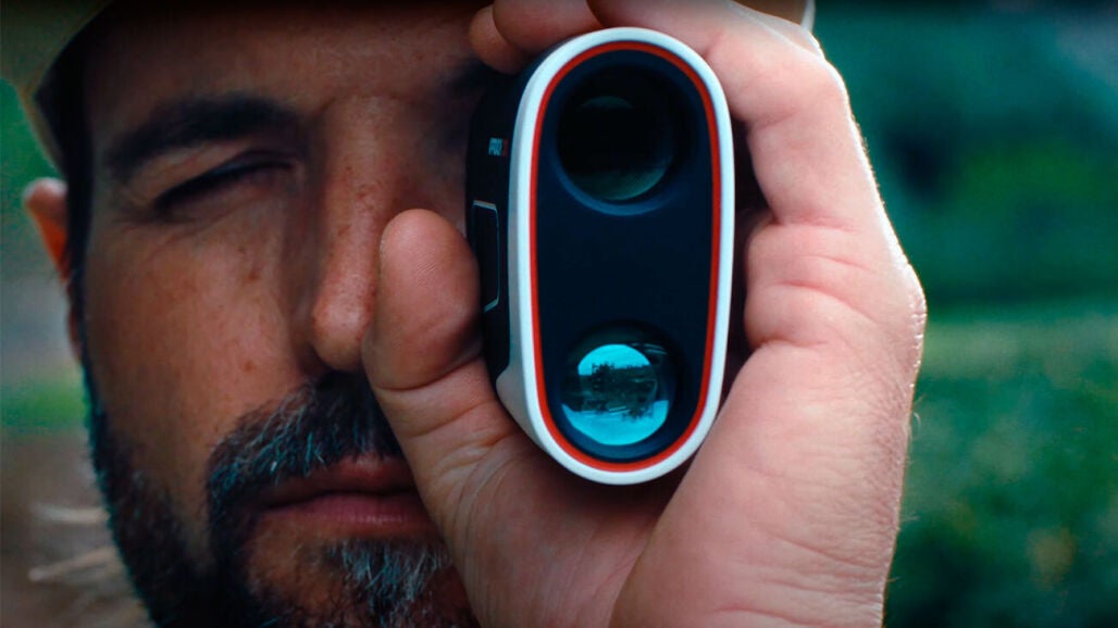Y es que este dispositivo se sincroniza con nuestro smartphone para recopilar toda la información relativa el campo en el que estamos jugando. Y gracias al láser incorporado es capaz de medir la distancia real hasta el banderín del hoyo, siempre y cuando esta sea inferior a los 366 metros, lo que no está nada mal.