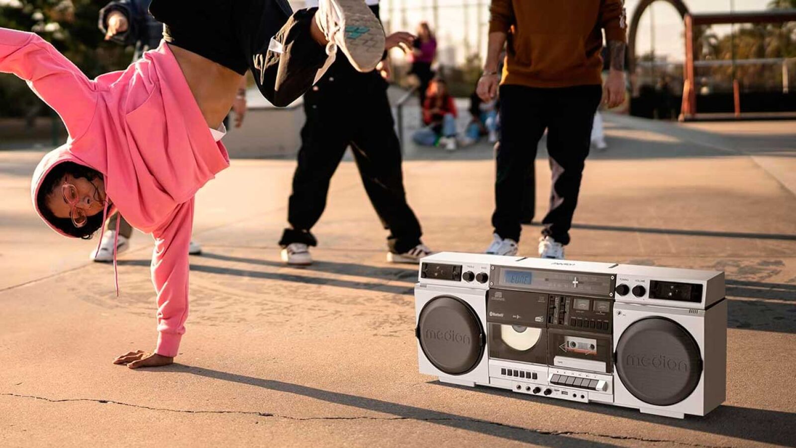 Comentamos con el Medium P66538, un ghettoblaster en todos los sentidos, con un diseño cuadrado y botones mecánicos con los que se puede escuchar el “clic” característico al pulsarlos. Además de un reproductor de casete analógico y CD, cuenta con Bluetooth de última generación, ranura para tarjeta MicroSD, radio digital DAB + además de puertos USB. Con dos woofers independiente y botón de X-Bass, para unos graves contundentes al más puro estilo ochentero.