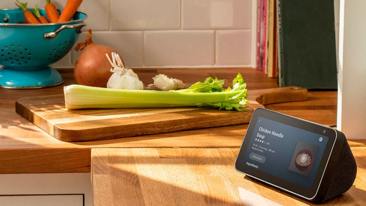 Comenzaremos por el principio, un gadget que nos solo nos ayuda a buscar y elegir la receta, sino que además podemos seguir fácilmente las indicaciones, incluso sin necesidad de tocar su pantalla. Los dispositivos Echo Show son una buena opción. Dependiendo del espacio que tengamos en nuestra cocina podemos optar por cualquiera de sus modelos, Echo Show 5, 8 y el Echo Show 15. A través de sencillos comandos de voz podemos pedirle que nos busque una receta y que nos diga cómo se hace. También podemos usarlo para ver nuestros programas preferidos mientras cocinamos.