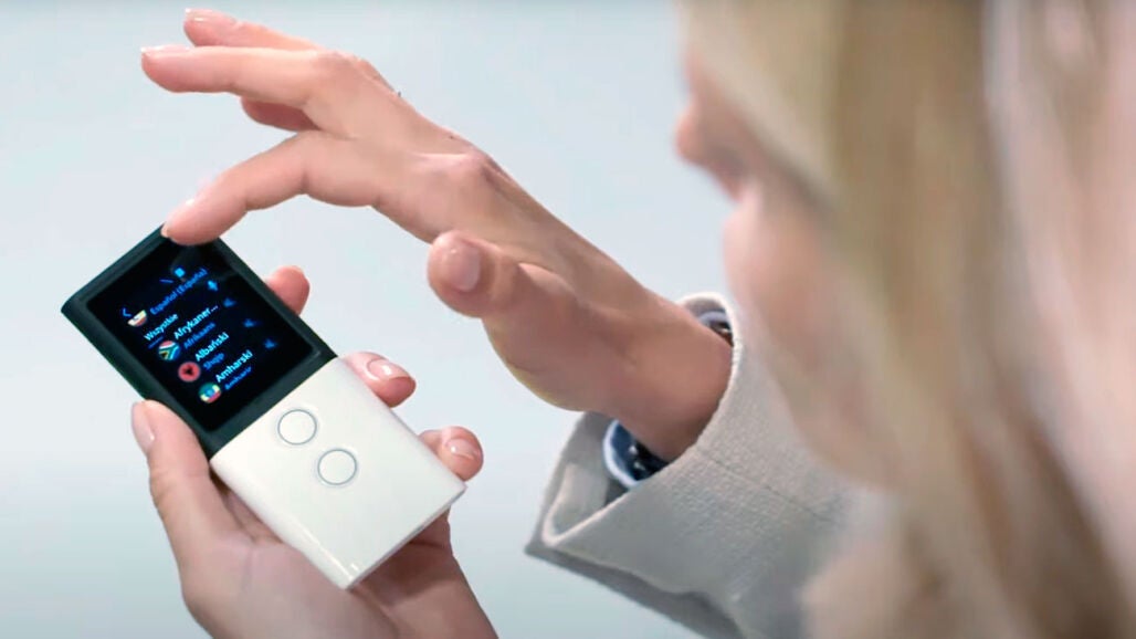 Uno de los más interesantes es Pocket Talk, que nos ofrece muchas funciones interesantes con un tamaño muy compacto. Lo que más nos interesa de este dispositivo es que no solo funciona con Wifi, sino que también puede utilizarse con una eSIM virtual, lo que lo hace completamente independiente del móvil.