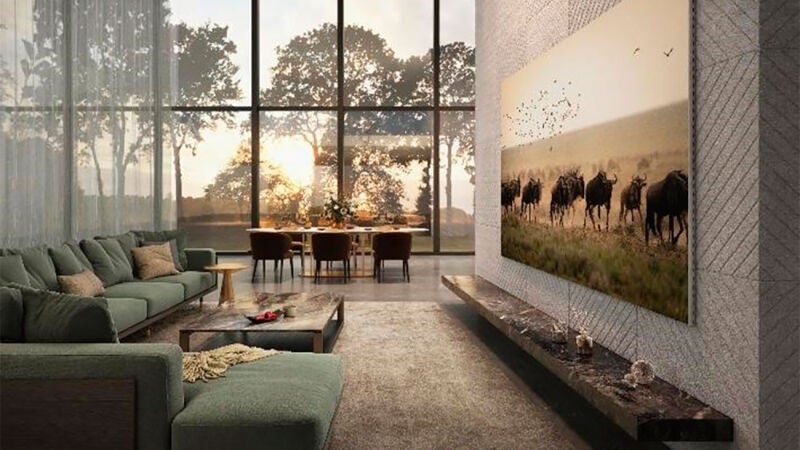 Imagina que en tu salón no hubiera una enorme superficie negra donde ahora se encuentra tu televisor. Sino que pudieras ver a través de él, y por tanto decorar la estancia en base a las posibilidades que nos da el poder ver a través del televisor. Este panel cuenta con tecnología MicroLED, y como podéis ver en el vídeo, es totalmente funcional, mostrando todo tipo de imágenes, que pueden contar con un fondo de terminado, o directamente dejar zonas sin contenido y por tanto totalmente transparentes.