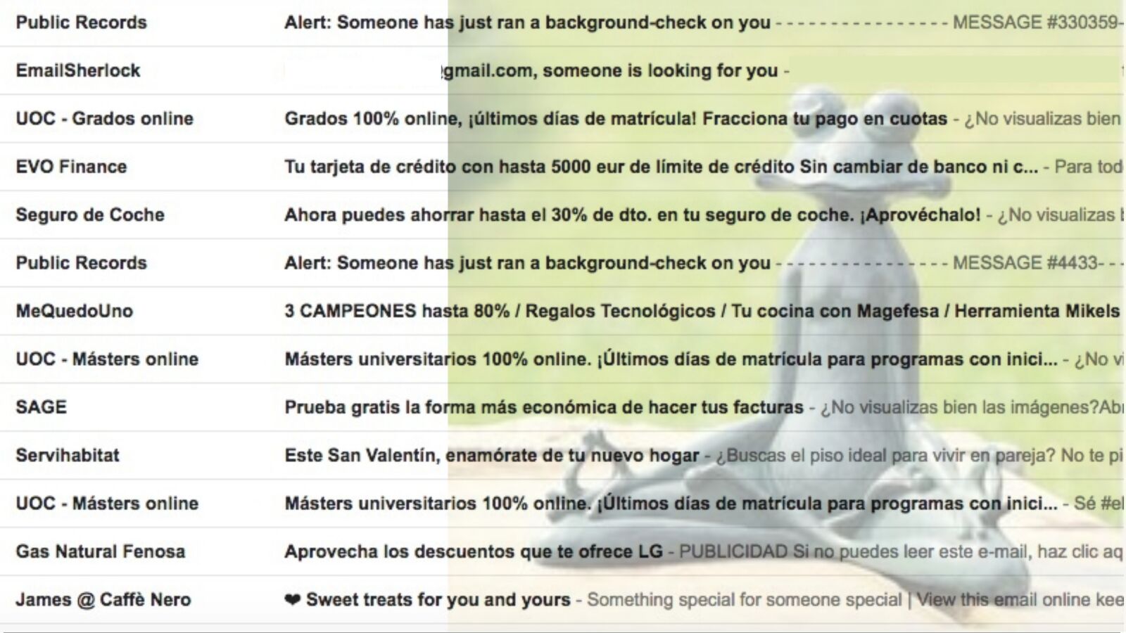 Nos suscribimos a listas de correo comercial, spam, recibimos reiteradas llamadas y mensajes de campañas comerciales, nuestros datos son vendidos y revendidos no se sabe quién y permitimos que decenas de apps accedan a la información personal de nuestro móvil con la misma alegría y soltura que invitamos a los colegas a un café en casa. Pero ellos no nos espían, son buenos, son nuestros amigos, nos protegen porque nos ofrecen servicios “gratis”.