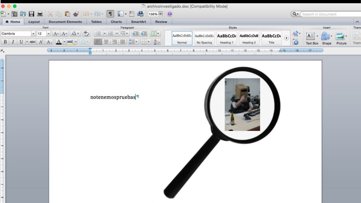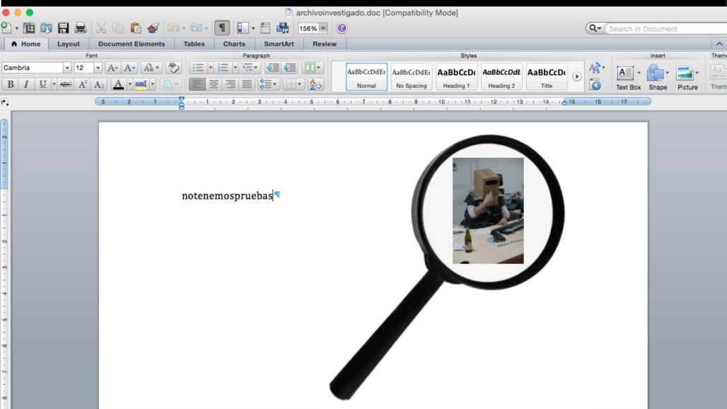 Durante el examen del contenido de las carpetas del detenido, una de las mismas con el nombre “Documentos” ofrecía estos contenidos: Carpeta “Plantillas personalizadas de Office” y un documento de Word denominado “archivoinvestigado”. Este archivo tenía un nombre sospechoso, así que decidieron ver que contenía. En su interior había un texto: “notenemospruebas”.