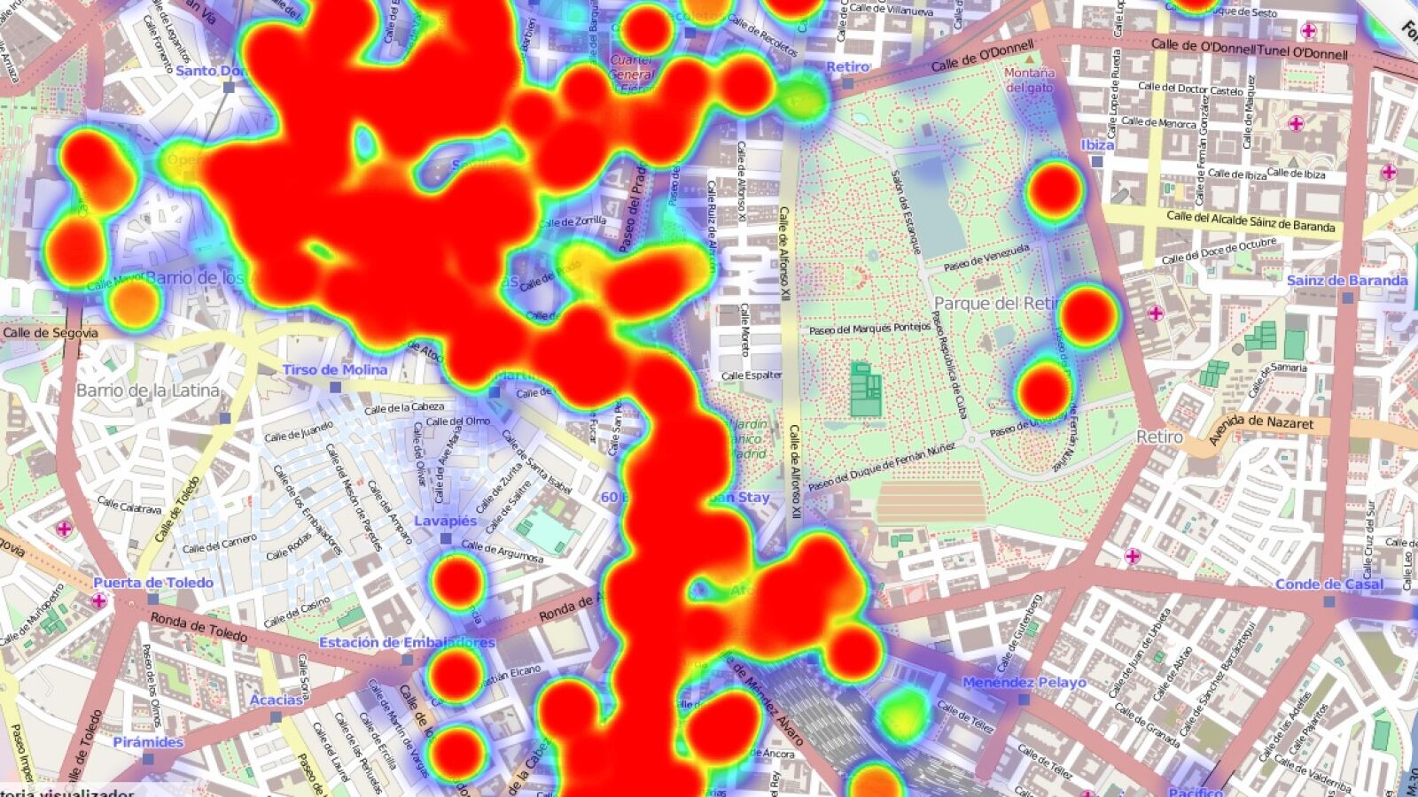 Finalmente, solo tienes que arrastrar el archivo que has descargado hasta la web, que creará un mapa de calor con los sitios en los que has estado últimamente. Una forma perfecta para visualizar en qué lugares pasas más tiempo y para comprobar que Google conoce todo (o casi todo) de ti.