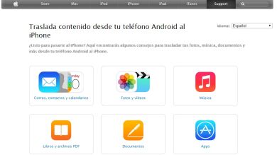 La guía trata de explicar de forma sencilla cómo transferir cuentas de correo electrónico, fotos, música, vídeos y todo tipo de documentos de un dispositivo Android a un iPhone. Para ello, Apple recomienda qué aplicaciones utilizar, siendo la mayoría apps de terceros.