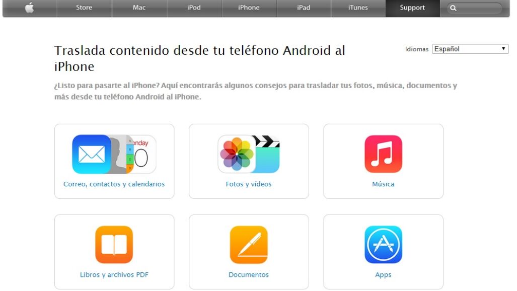 "¿Listo para pasarte al iPhone? Aquí encontrarás algunos consejos para trasladar tus fotos, música, documentos y más desde tu teléfono Android al iPhone". Con esas palabras, Apple presenta esta peculiar guía en la que, por primera vez, se pueden leer palabras como "Android" o "Google Play", a pesar de estar en territorio enemigo.