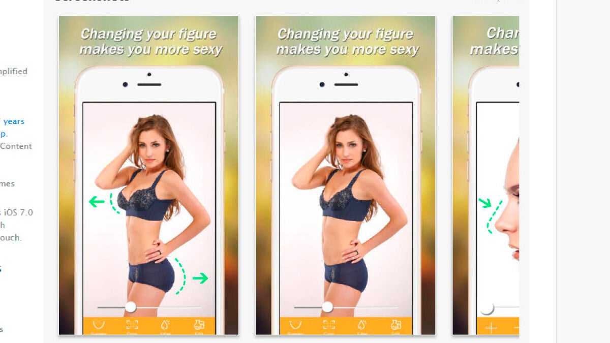 Puedes encontrar esta app en Android y en iOS. Se caracteriza porque cuenta con un detector de rostros y, además de adelgazar y modificar distintas partes del cuerpo, también te permite hacer lo mismo con la cara. Es perfecta para hacer desaparecer los kilos de más que no quieres ver en tu foto.