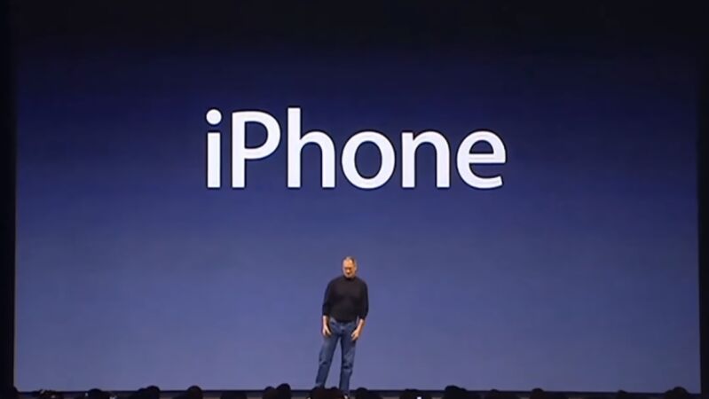 El 9 de enero de 2007 Steve Jobs materializó los rumores que sonaban desde hacía meses acerca de un teléfono móvil de Apple. Se permitió incluso retar a la audiencia de la Macworld Conference & Expo, diciendo que a continuación iba a presentar "an iPod, a phone and an internet communicator".