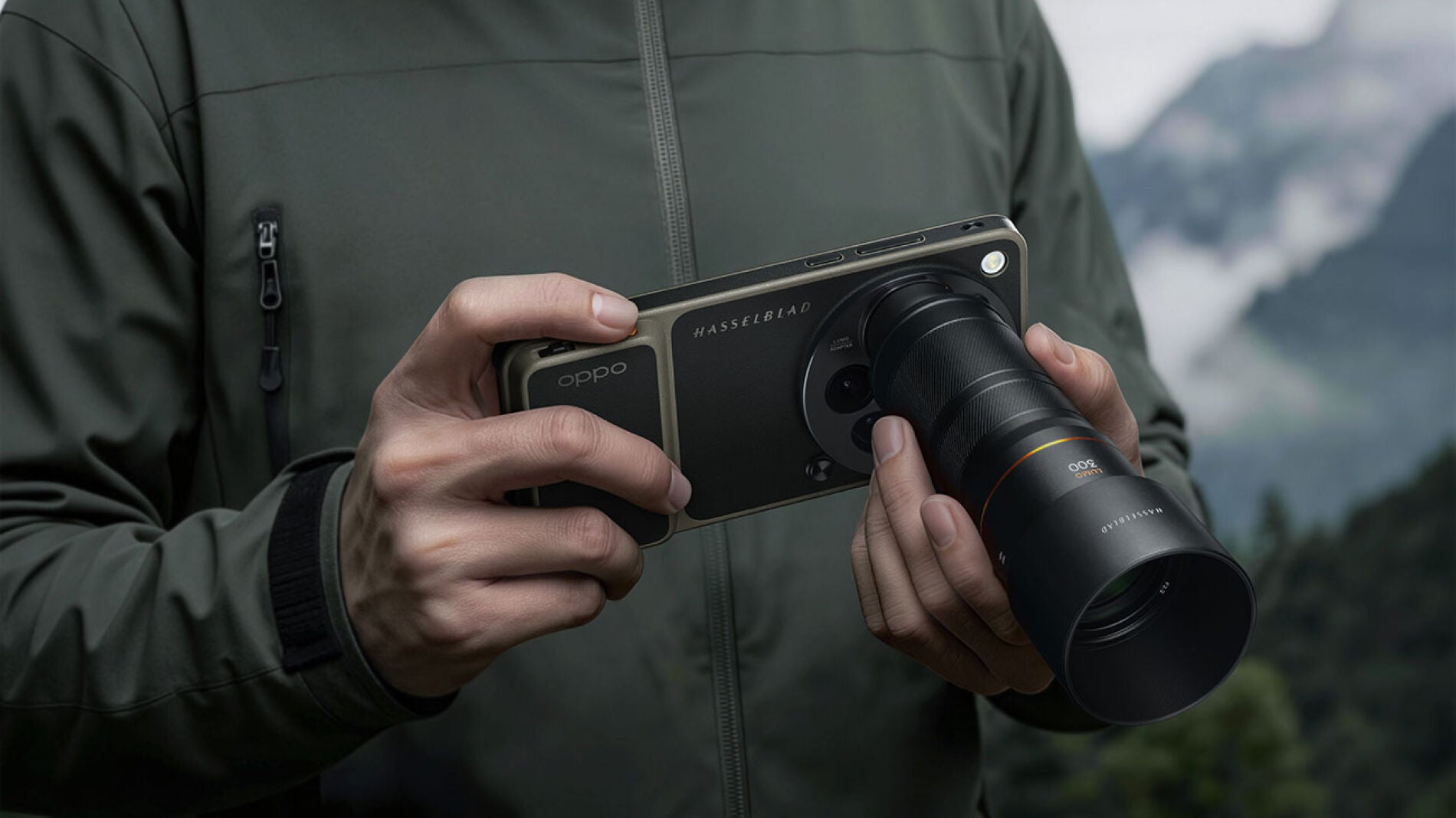 Sin duda la estrella del lanzamiento será este Kit que convierte el teléfono en una auténtica cámara profesional con el factor de forma de un smartphone. Dentro de este kit tenemos la Hasselblad Explorer Case, que es una funda de cuero verde con botón de obturador de dos etapas y dial físico para zoom.