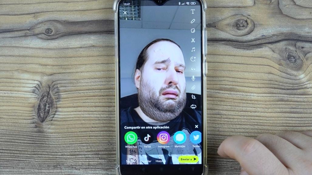 Con el filtro seleccionado, ya podremos comenzar a grabar el vídeo en la misma app de Snapchat, ya que este filtro aún no está implementado ni existe alguno parecido para la plataforma de TikTok. Cuando tengamos todo listo y hayamos terminado de grabar el vídeo debemos descargarlo y para ello el proceso es muy sencillo, solo debemos pulsar en la opción de guardar que está situada abajo a la izquierda de la pantalla, así conseguiremos de esta manera que nuestro vídeo se guarde directamente en la galería de nuestro teléfono.