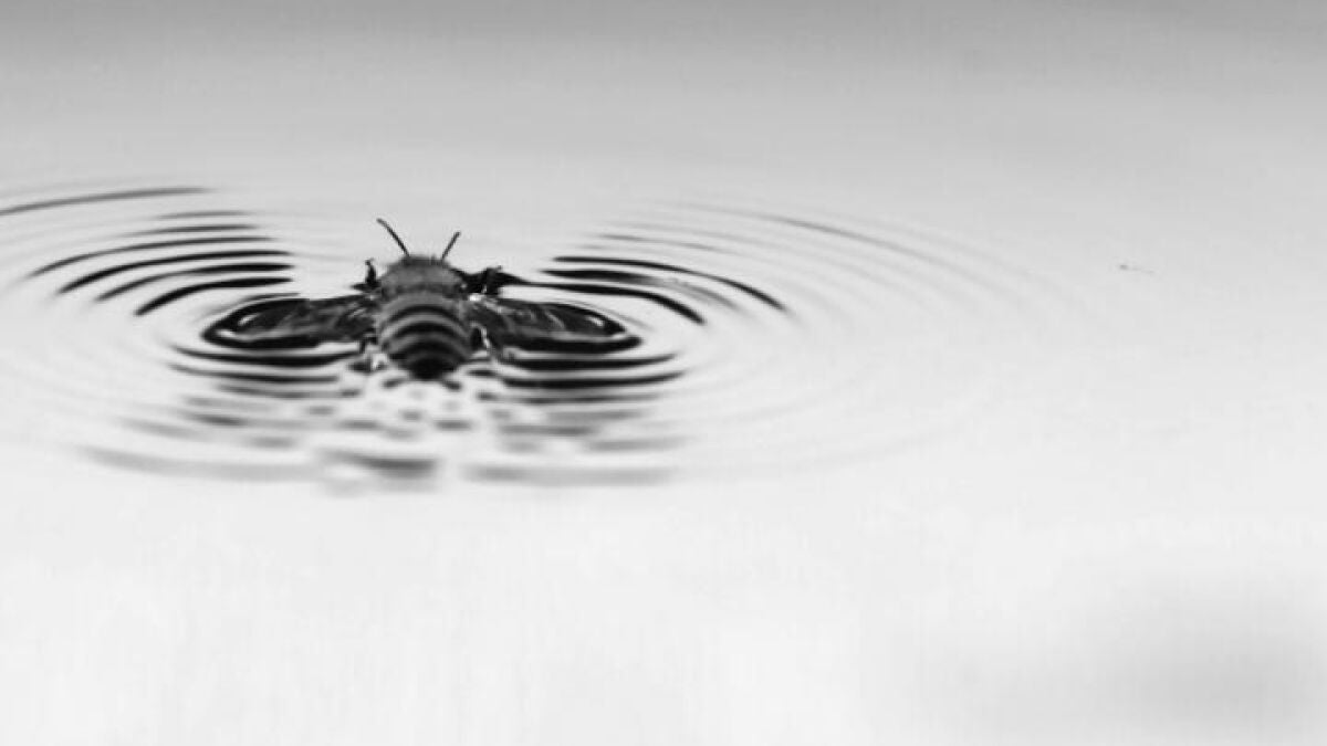 En los días calurosos, las colmenas necesitan agua para enfriarse, así que cuando la temperatura sube, las abejas obreras salen a recoger agua de un estanque y la transportan. A veces, sin embargo, se caen y sus alas se adhieren al agua impidiéndoles volar. Si no consiguen liberarse, mueren.