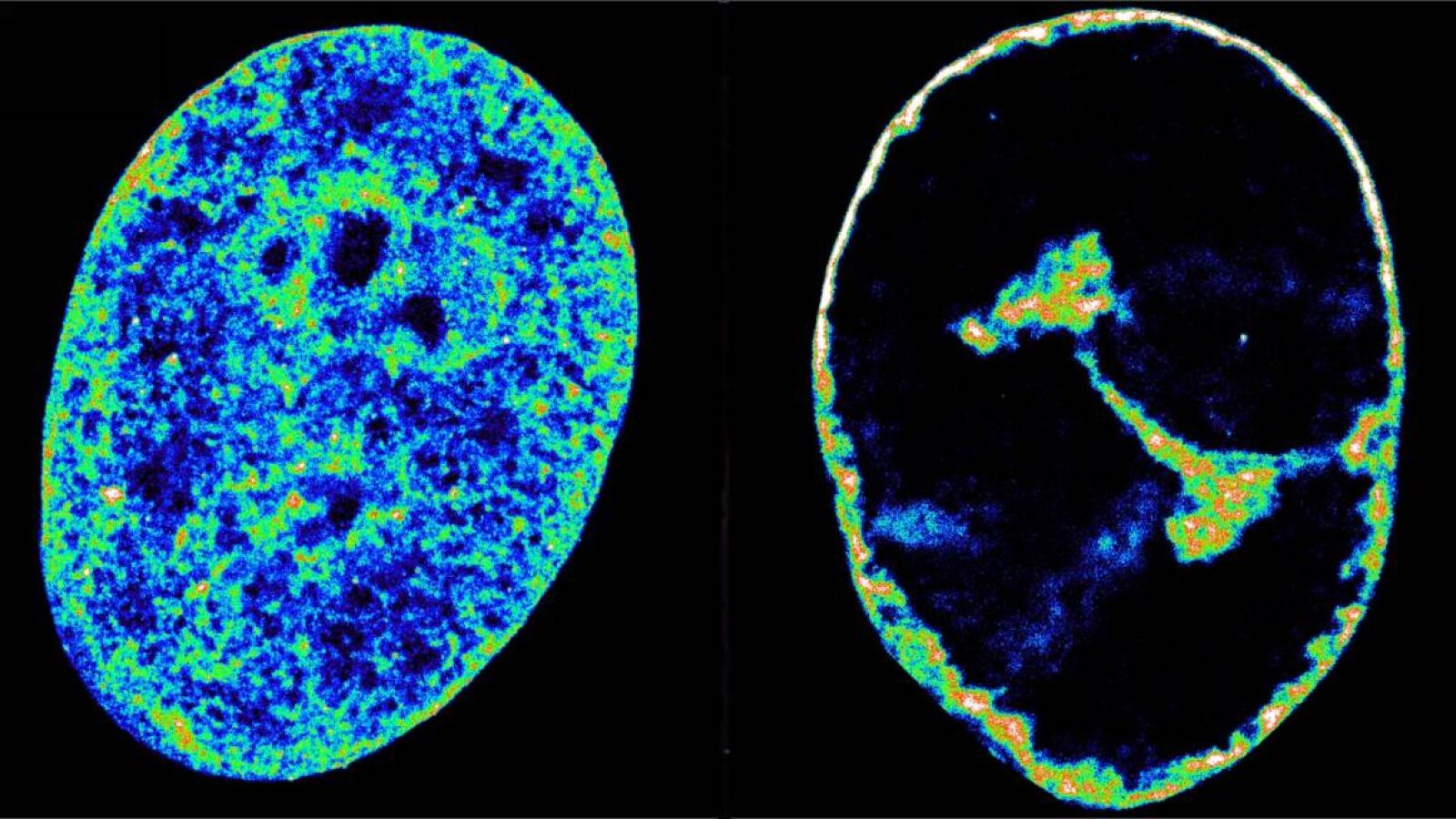 El hurto molecular hace que la transcripción se venga abajo en todo el genoma del huésped, lo que a su vez provoca que la cromatina, el estado natural del genoma humano dentro de las células, se compacte en una cáscara densa de solo el 30% de su volumen original.