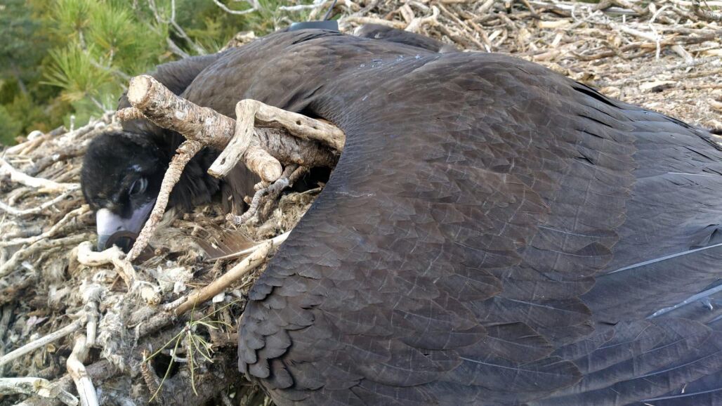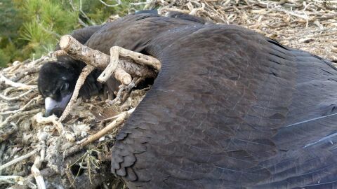 El buitre negro intoxicado por diclofenaco, fotografiado con vida dos días antes de conocerse su muerte en el nido. / GREFA