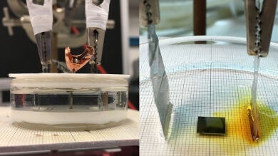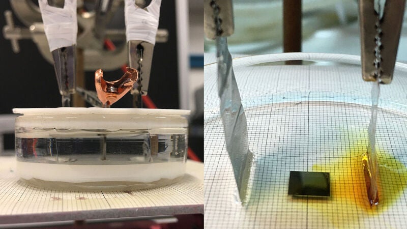 Para conseguirlo, los investigadores han situado la muestra de material magnético dentro de un líquido con conductividad iónica y han aplicado el voltaje a este mediante dos placas de platino, sin conectar ningún cable directamente a la muestra.