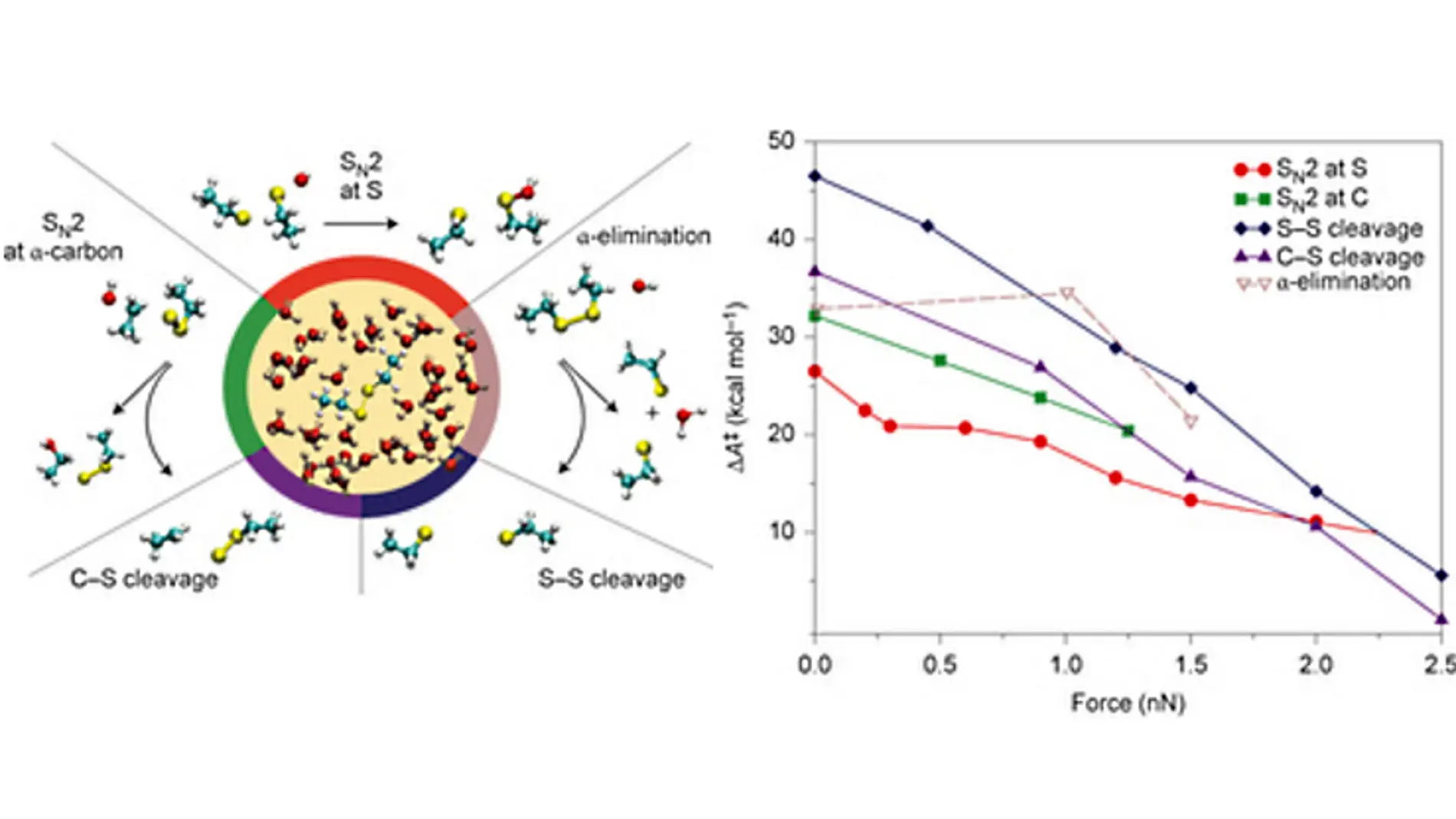 Ahora un trabajo publicado en Nature Chemistry muestra una complejidad inesperada en la reacción de reducción de los disulfuros en solución alcalina, que prevé la ruptura del enlace covalente entre los átomos de carbono y sulfuro cuando esta es activada por una fuerza mecánica externa.