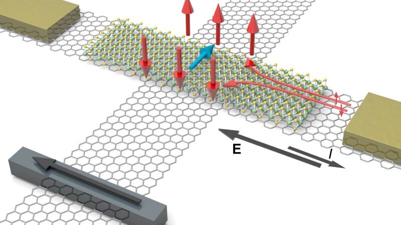 Unas heteroestructuras basadas en grafeno, llamadas de van der Waals, podrían utilizarse para diseñar dispositivos electrónicos y memorias magnéticas ultracompactos y de bajo consumo energético. Esto es lo que sugiere un trabajo publicado por investigadores del ICN2 en la revista Nature Materials. Los resultados han demostrado que es posible realizar en estas estructuras una conversión espín-carga eficiente y ajustable y, por primera vez, a temperatura ambiente.