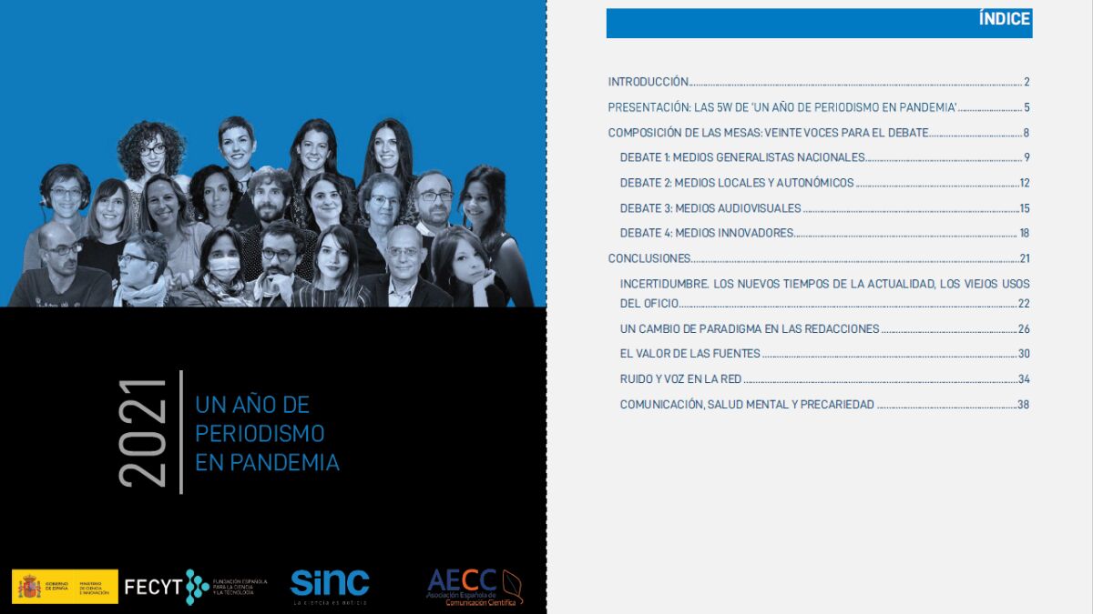 La agencia SINC de la FECYT y la Asociación Española de Comunicación Científica han presentado hoy el cuaderno Lecciones de un año de periodismo en pandemia, que recoge las conclusiones del ciclo de debates online celebrado a lo largo de los meses de enero y febrero entre una veintena de periodistas y responsables de comunicación que han cubierto informativamente la crisis sanitaria.