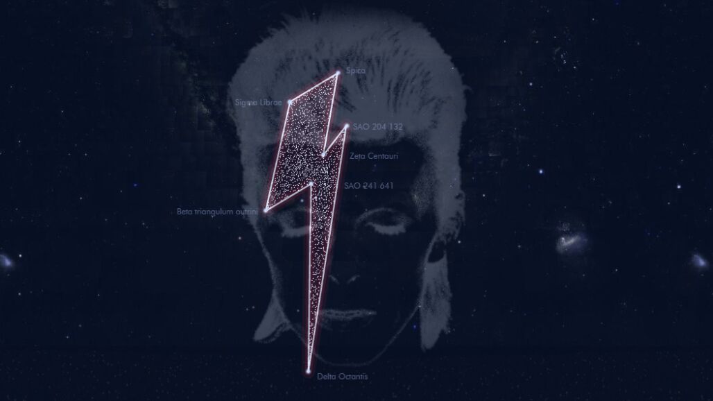 Astrónomos belgas han rendido homenaje al legendario músico David Bowie y le han puesto su nombre a una constelación de siete estrellas cercana a Marte. Su forma se parece al rayo pintado sobre el rostro del artista en la portada de su disco Aladdin Sane.