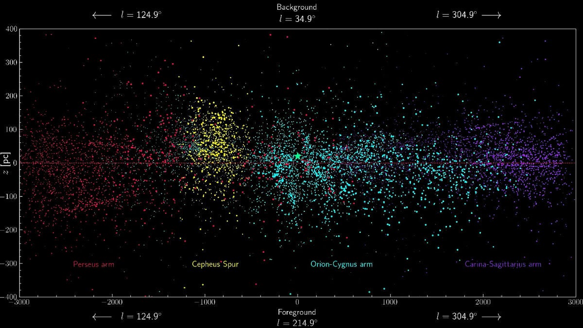 El mapa es tan detallado que ha permitido descubrir algo que nadie había visto hasta ahora: un ramal del brazo espiral donde se encuentra nuestro sistema solar (el de Orión). Los investigadores lo han bautizado como “el espolón de Cefeo”: espolón (spur en inglés) porque es como se denominan este tipo de estructuras entre brazos y de Cefeo porque es la constelación donde es más prominente.