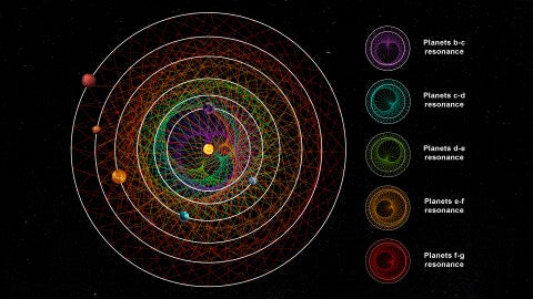 Aunque los sistemas multiplanetarios son comunes en nuestra galaxia, los que se encuentran en una ajustada formación gravitatoria conocida como resonancia (órbitas sincronizadas de una manera particular) se observan con mucha menos frecuencia.