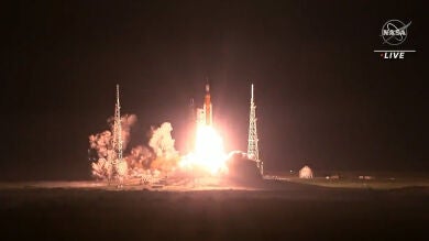 La NASA ha lanzado este miércoles el megacohete SLS, el más potente del mundo, con la cápsula Orion a bordo. Esta nave no tripulada se moverá en una órbita lunar y regresará a la Tierra después de un vuelo de 26 días en el que se probarán tecnologías que permitirán la futura exploración humana de la Luna y Marte.