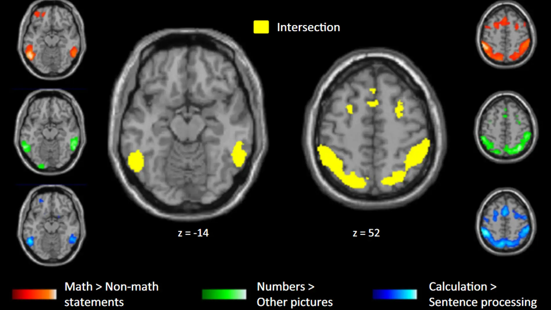 Según los autores, estos resultados apoyan la hipótesis de que el pensamiento matemático de alto nivel despliega la misma red neural que la del sentido básico de los números (ambas comparten raices comunes del circuito cerebral), y que es distinta a la red del lenguaje.