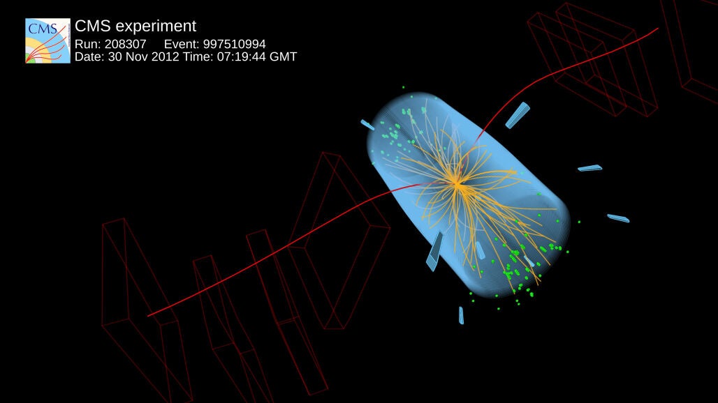 En un artículo publicado hoy en la revista Nature, las colaboraciones de los experimentos CMS y LHCb del Gran Colisionador de Hadrones (LHC) describen la primera observación de una desintegración muy inusual de un tipo de partículas, los mesones B0 s, en dos muones, partículas similares a los electrones pero más pesados.