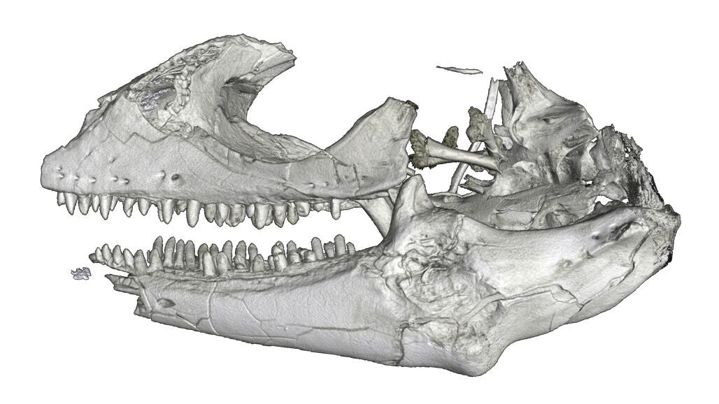 Además, el cráneo encontrado estaba fuertemente construido, “lo que sugiere que pudo haber sido capaz de aprovecharse de una amplia variedad de alimentos”, apunta el científico. El fósil muestra pequeños dientes que le permitieron comer serpientes, otros lagartos, peces, insectos y plantas, como hacen en la actualidad sus parientes modernos.