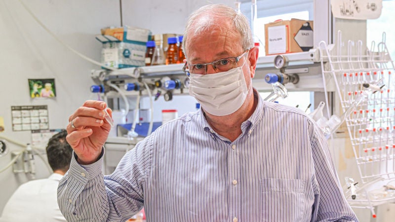 Ramón Martínez Máñez, director científico del CIBER de Bioingeniería, Biomateriales y Nanomedicina (CIBERBBN) y profesor de la UPV, explica cómo funciona el sistema de diagnóstico alternativo en el que trabajan: los nanoporos del biosensor se cargan con un colorante –rodamina B– y se cierran con un oligonucleótido.
