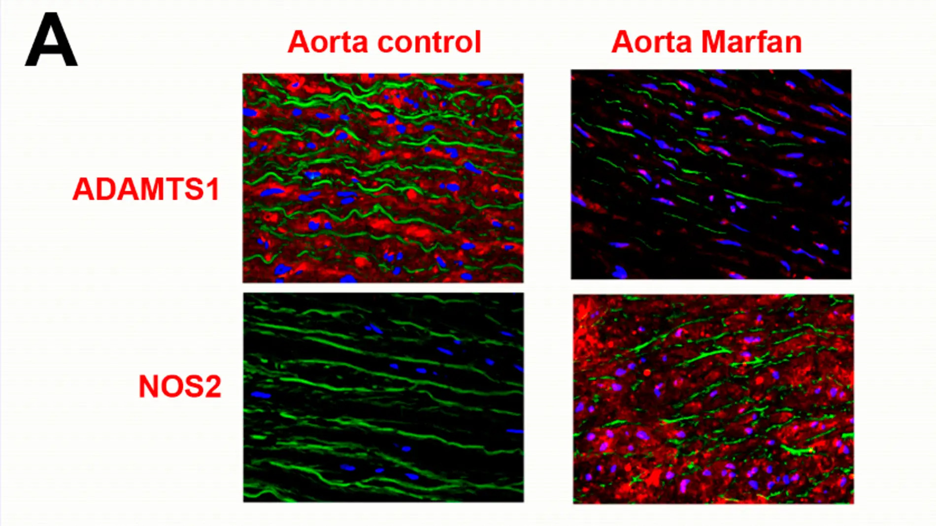 Así, los resultados demuestran que los ratones deficientes en Adamts1 desarrollan una enfermedad similar al síndrome de Marfan y, además, que la inactivación genética de la expresión de Nos2 previene la aortopatía en ratones deficientes en Adamts1 y en un modelo de ratón del síndrome de Marfan.
