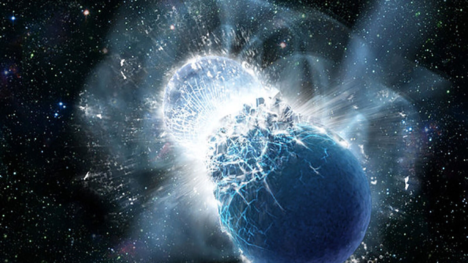 Cuando dos agujeros negros chocan, deforman el tejido del espacio y el tiempo, produciendo ondas gravitacionales. Cuando dos estrellas de neutrones chocan, no sólo envían ondas gravitacionales sino también luz. Esto significa que los telescopios sensibles a las ondas de luz a través del espectro electromagnético pueden ser testigos de estos ardientes impactos junto con LIGO y Virgo. Uno de estos eventos ocurrió en agosto de 2017: LIGO y Virgo descubrieron inicialmente una fusión de estrellas de neutrones en ondas gravitacionales y luego, en los días y meses siguientes, cerca de 70 telescopios en tierra y en el espacio fueron testigos de las explosivas secuelas de las ondas de luz, incluyendo todo, desde rayos gamma hasta luz óptica y ondas de radio.