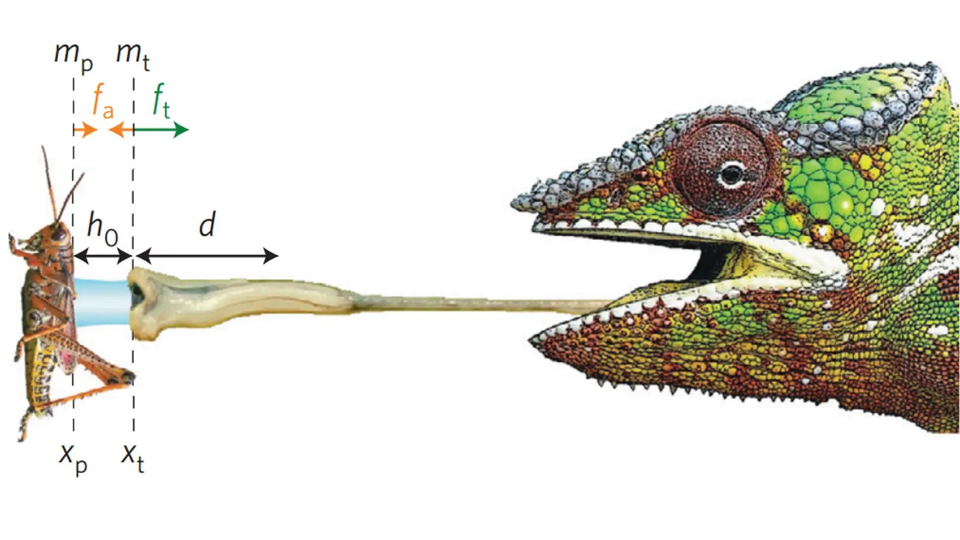 Fabian Brau et al. “Dynamics of prey prehension by chameleons through viscous adhesión” Nature Physics 20 de junio de 2016