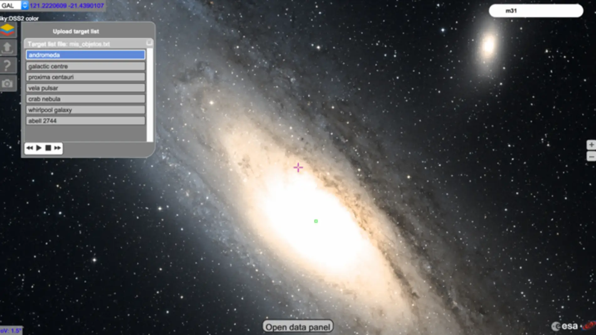 Además de esa posibilidad de visualizar objetos concretos, también existe la opción de ver panorámicas completas del cielo en las que podemos ampliar sectores para obtener mayor detalle o subir a la herramienta una lista con nombres de objetos celestes y visitarlos en una secuencia.