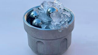 Con la ayuda de bolas de acero, investigadores del University College de Londres han molido agua congelada a –200 °C hasta conseguir una forma amorfa desconocida, con una densidad media muy cercana a la del agua líquida. Un proceso parecido podría ocurrir en las lunas heladas del sistema solar.