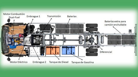 Investigadores de la Universidad Politécnica de Valencia han ideado un motor para camiones que aúna la tecnología híbrida con la dual diésel-gasolina. De esta forma se reducen un 92 % las emisiones de óxidos de nitrógeno, un 88 % las de hollín y un 15 % las de CO2, respecto al motor diésel, adelantándose así a la exigente normativa anticontaminación europea para 2025.